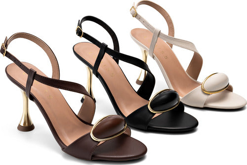 Sandália Feminina Lumiss Confortável Salto Fino Alto Enfeite