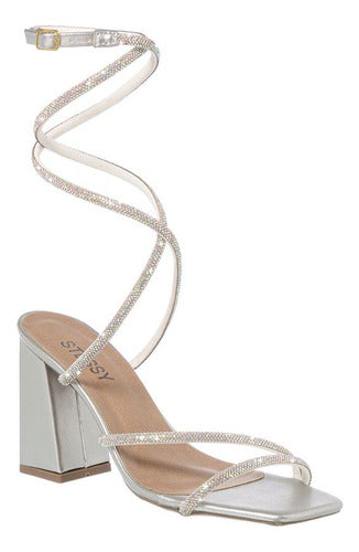 SANDALIA SALTO GROSSO AMARRAÇÃO BRILHO