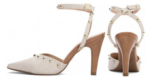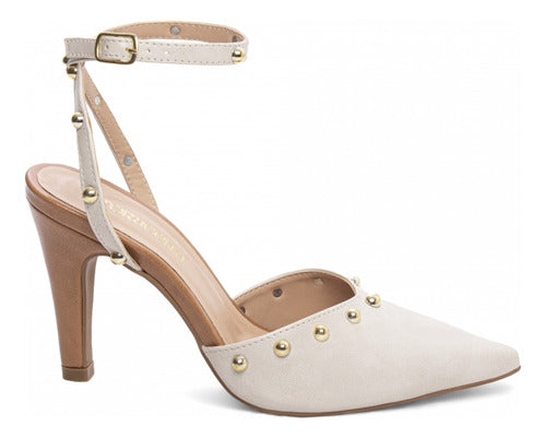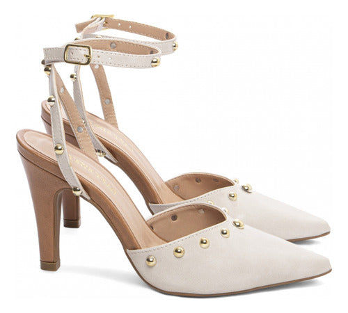 Palmilha: 8 mm de Espessura, Espuma em EVA, Revestida em Napa Bege e Taloneira Napa Bege;