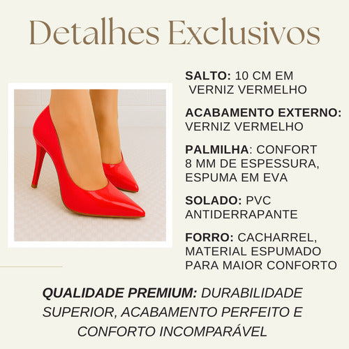 CONFORTO INIGUALÁVEL: Desperte a sensação de caminhar nas nuvens! Nosso Sapato Scarpin é projetado para proporcionar o máximo de conforto, com uma palmilha especial Confort de 8 mm de espessura, espuma em EVA e revestimento em Verniz ou Napa. Seus pés merecem esse cuidado!