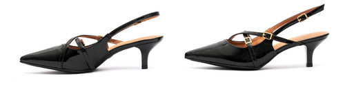 A abertura traseira com fecho em fivela ajustável garante um ajuste perfeito e seguro, enquanto o salto médio proporciona a altura ideal para um caminhar elegante e estável. O interior acolchoado oferece conforto durante todo o dia, tornando-o a escolha perfeita tanto para eventos formais quanto para o uso diário.