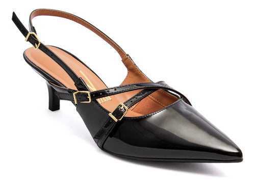 Scarpin Vizzano Slingback Feminino Salto Baixo Fivelas