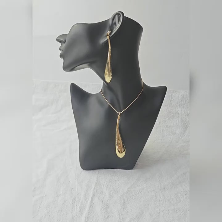 Conjunto de colar e brincos em estilo punk simples com pingente em forma de gota d'água - Combo de joias de liga de alumínio com strass para mulheres, perfeito para ocasiões diárias e festas - Conjunto de 3 peças