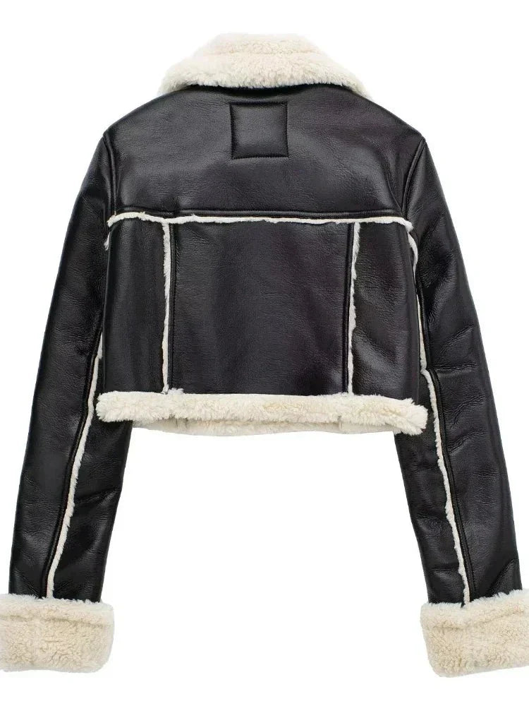 Jaqueta Feminina de Inverno em Couro Genuino - Hermez Europa