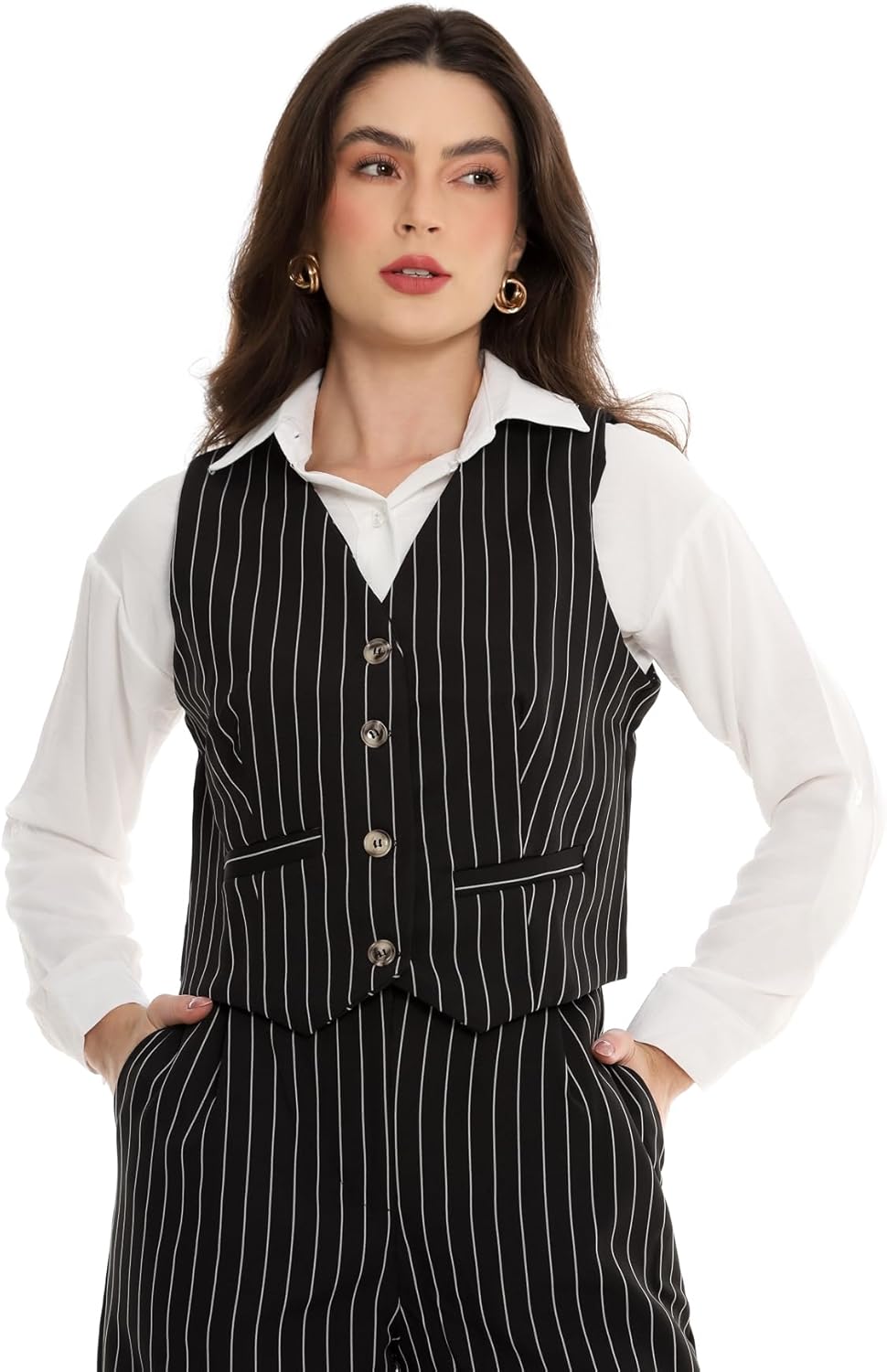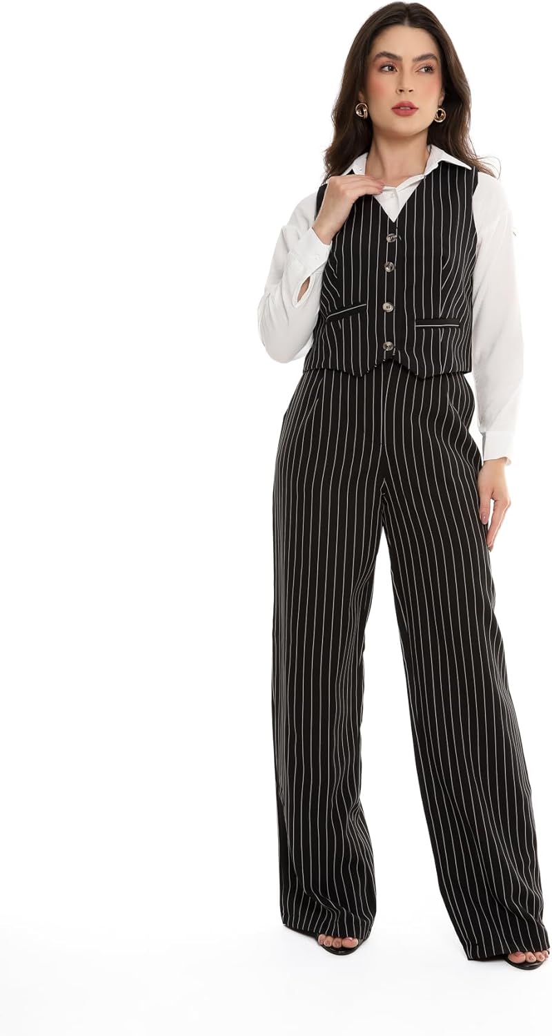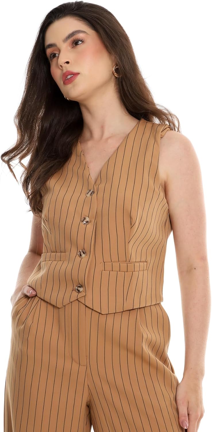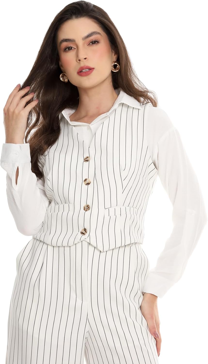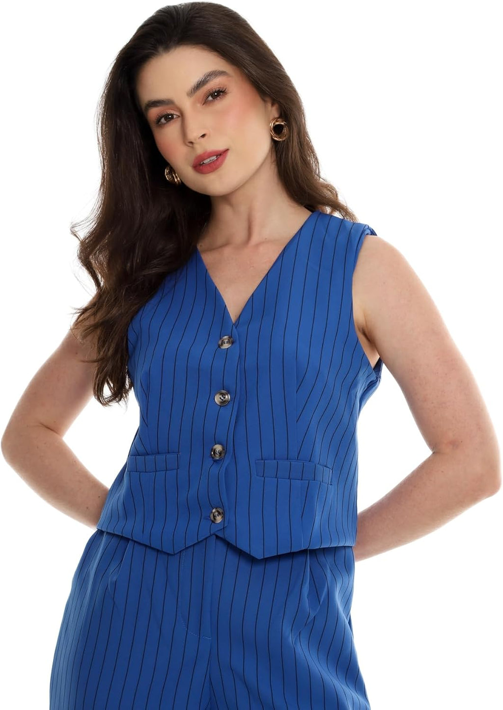 - DESIGN ELEGANTE: Conjunto de alfaiataria listrado com colete ajustado e short coordenado, ideal para um visual sofisticado e moderno