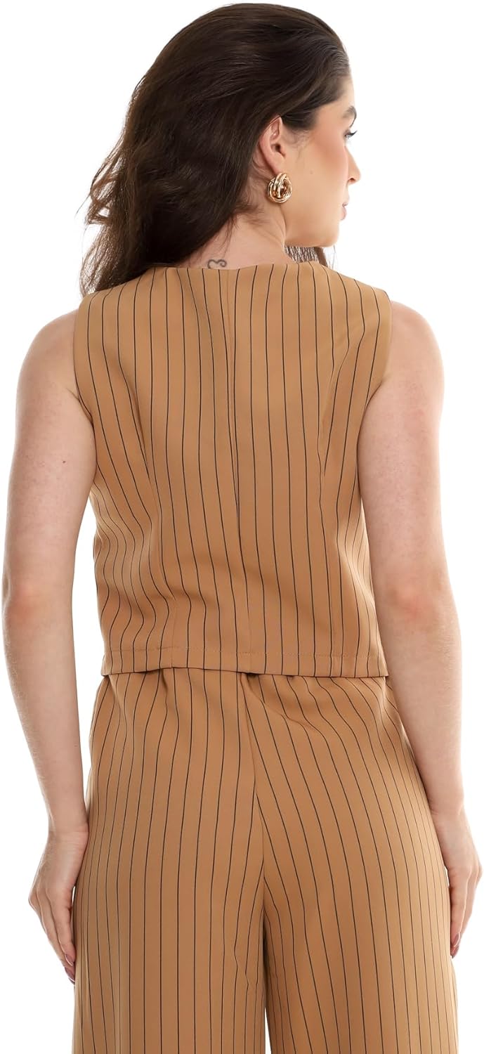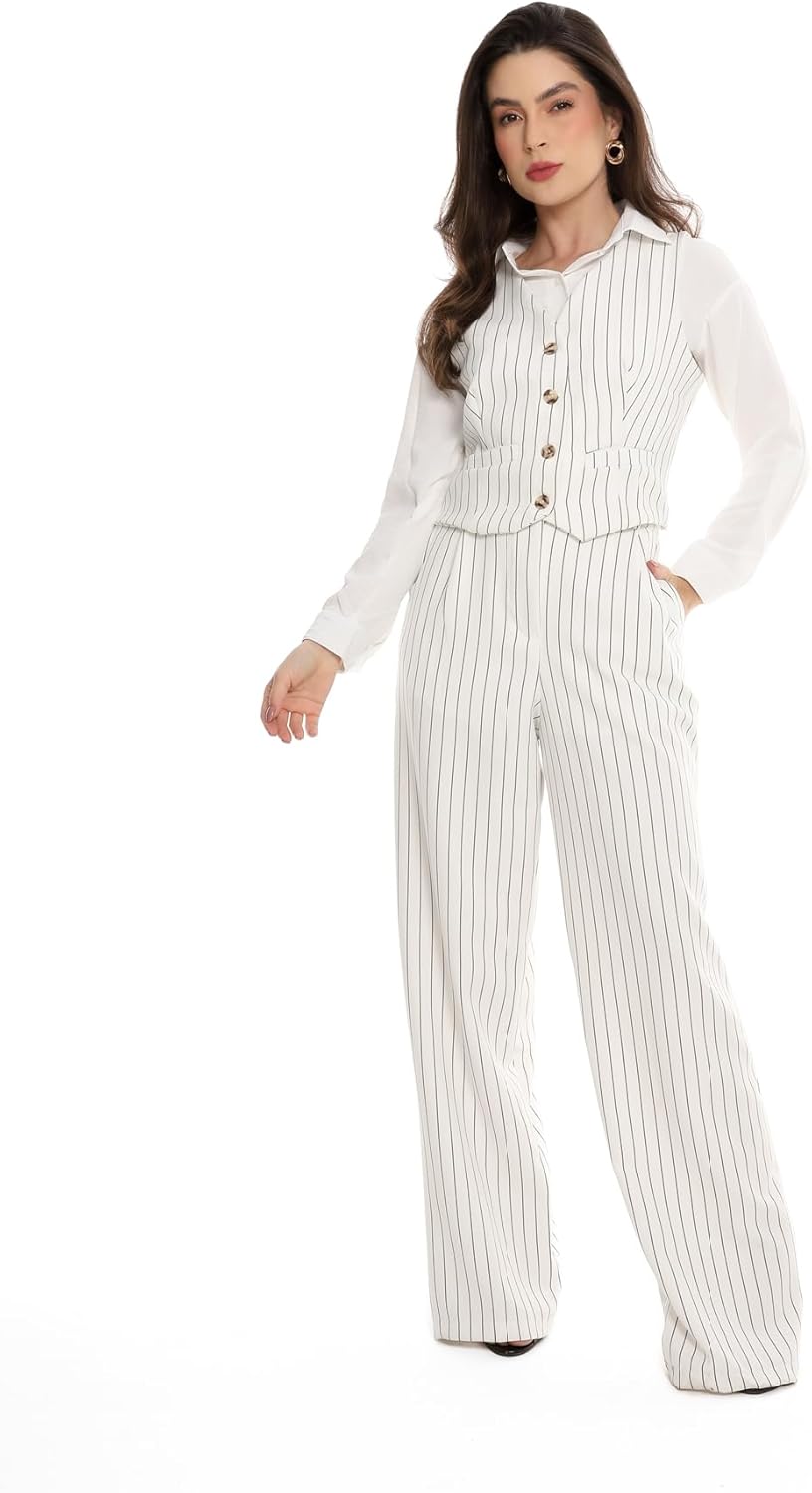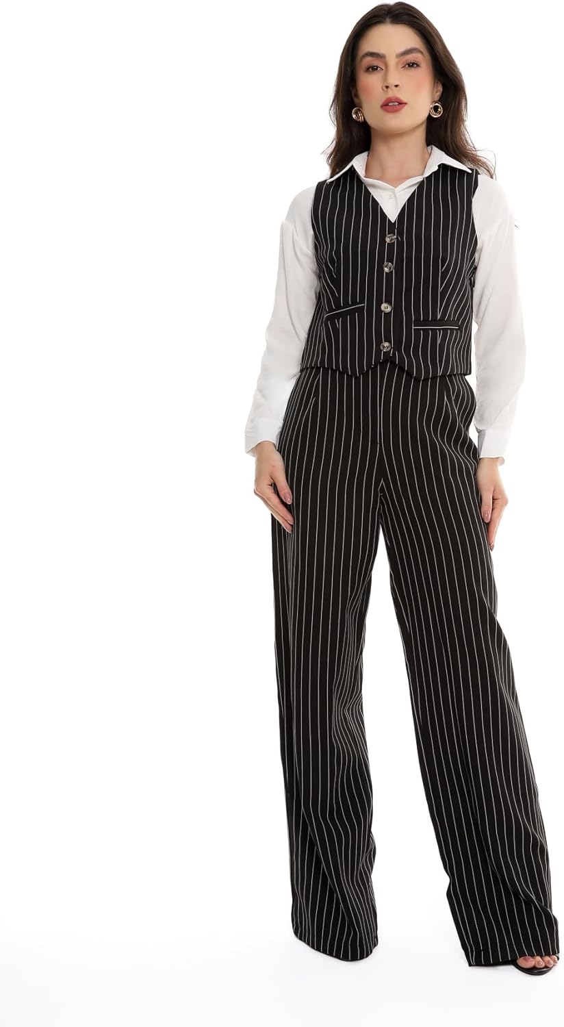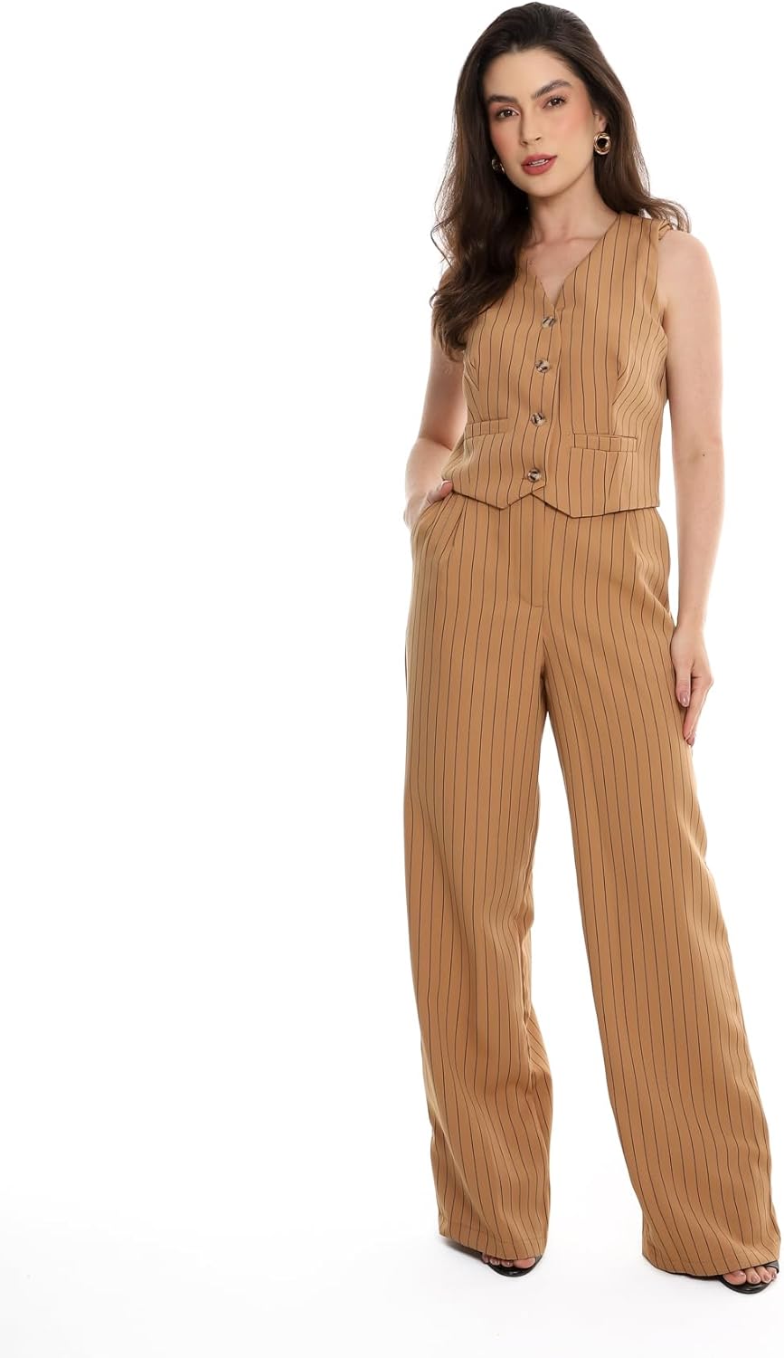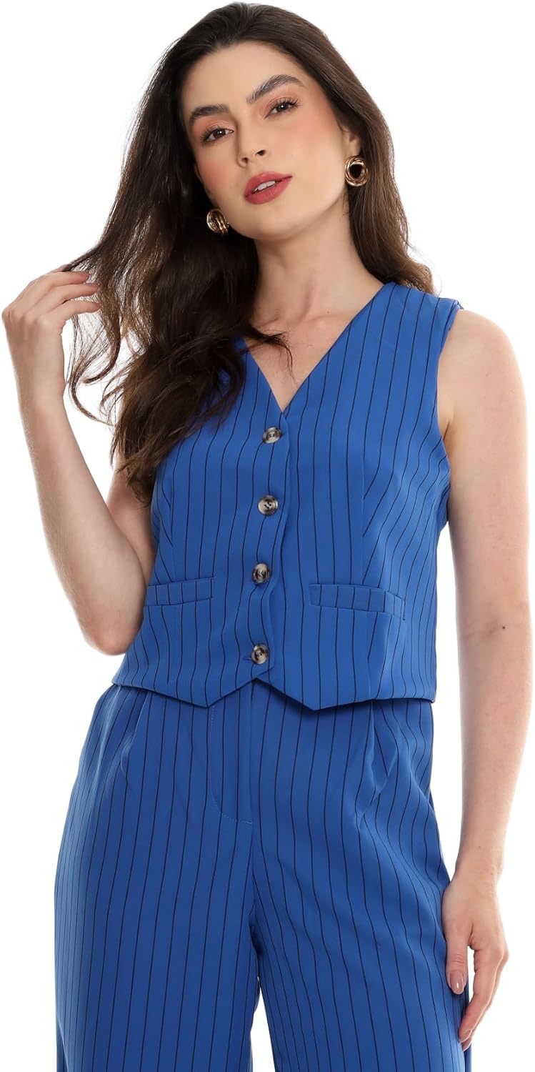 - DESIGN ELEGANTE: Conjunto de alfaiataria listrado com colete ajustado e short coordenado, ideal para um visual sofisticado e moderno