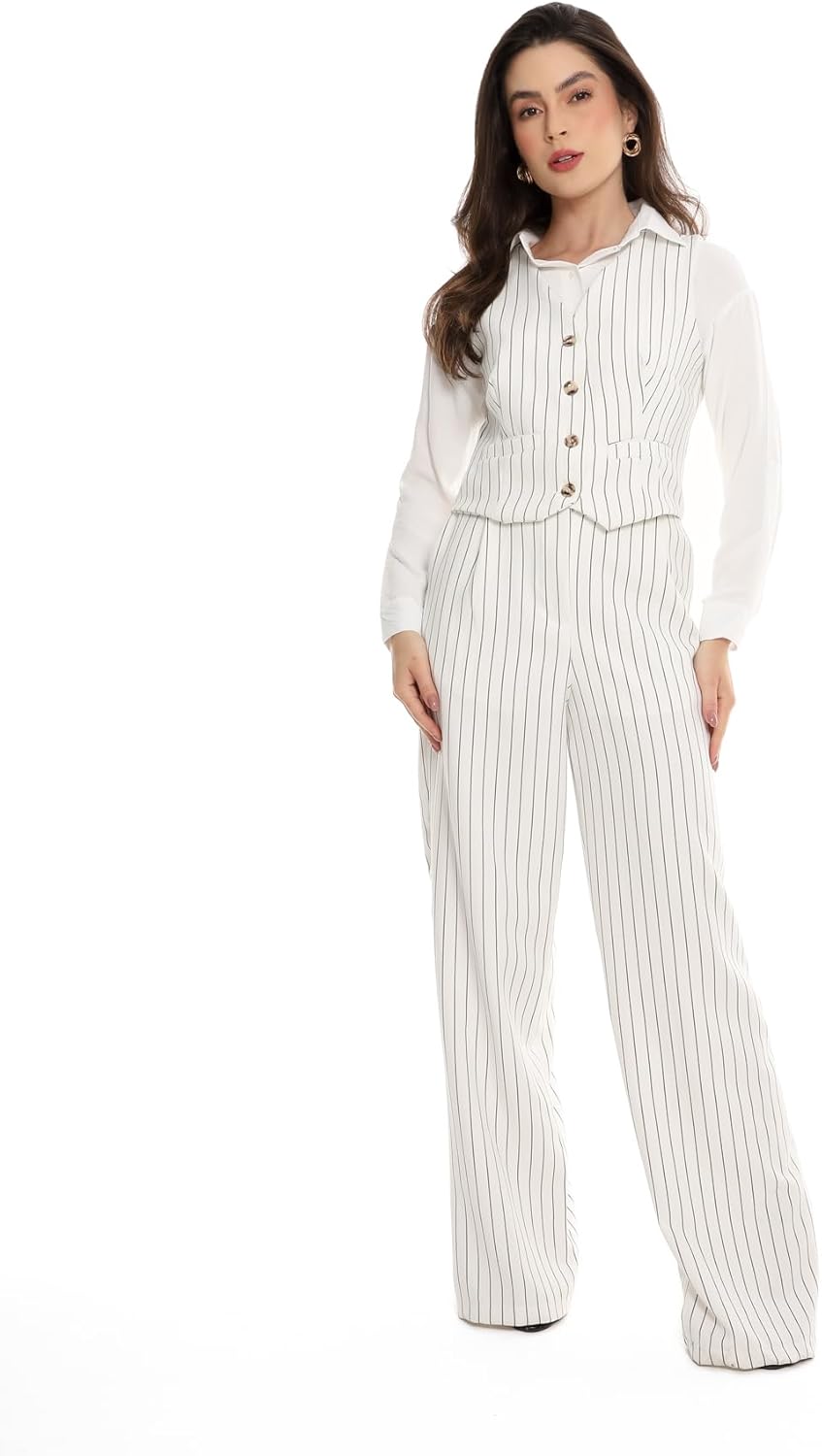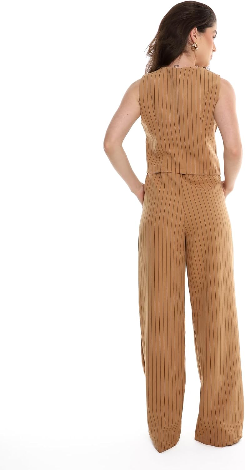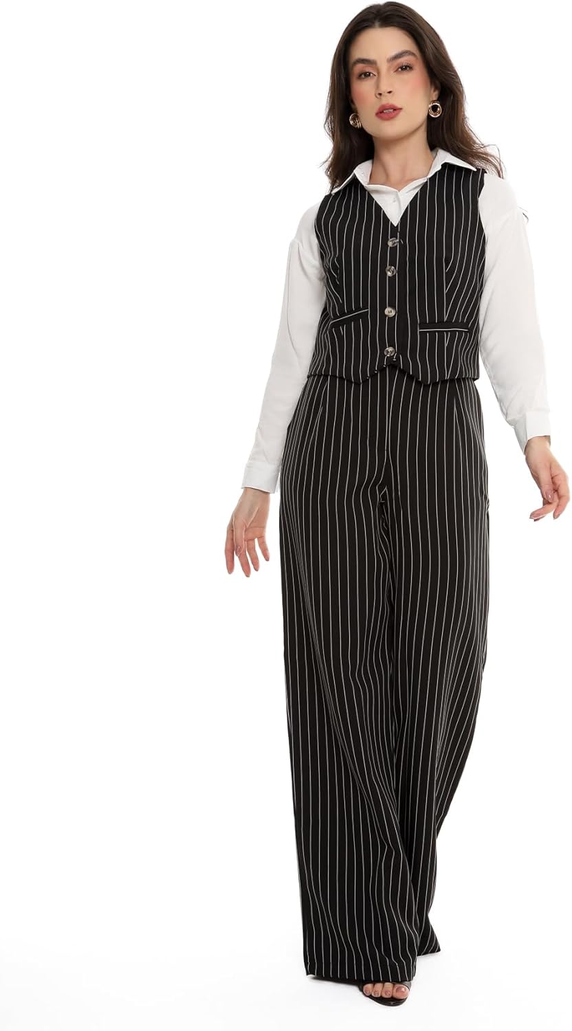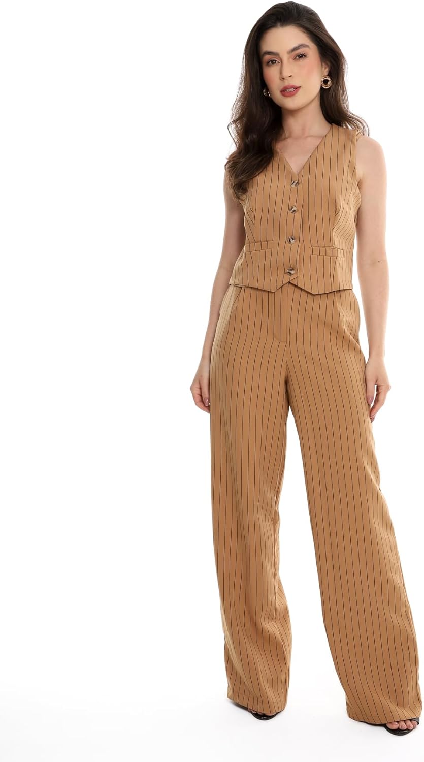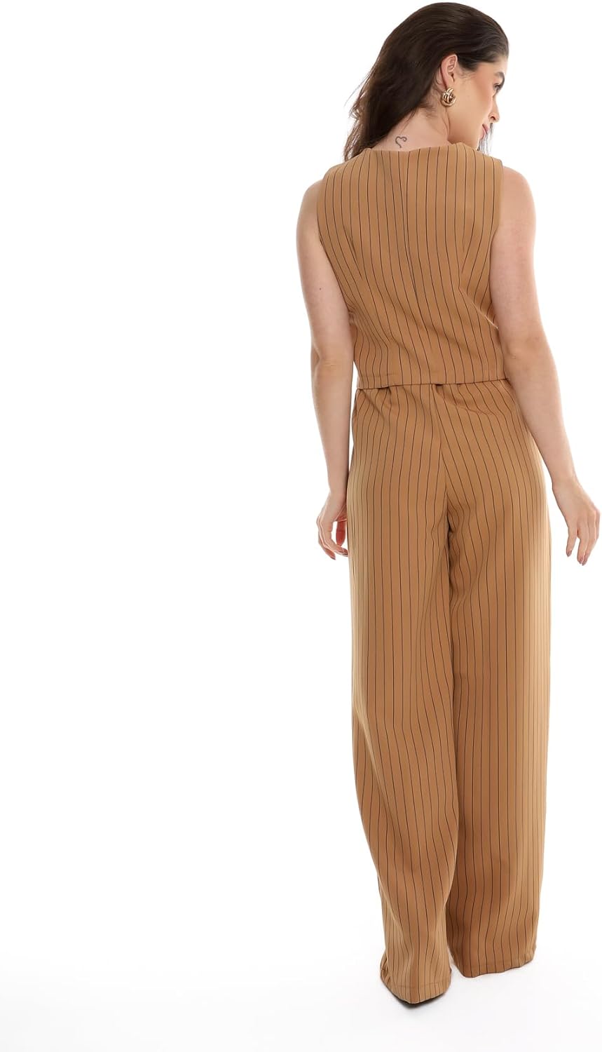 - DESIGN ELEGANTE: Conjunto de alfaiataria listrado com colete ajustado e short coordenado, ideal para um visual sofisticado e moderno