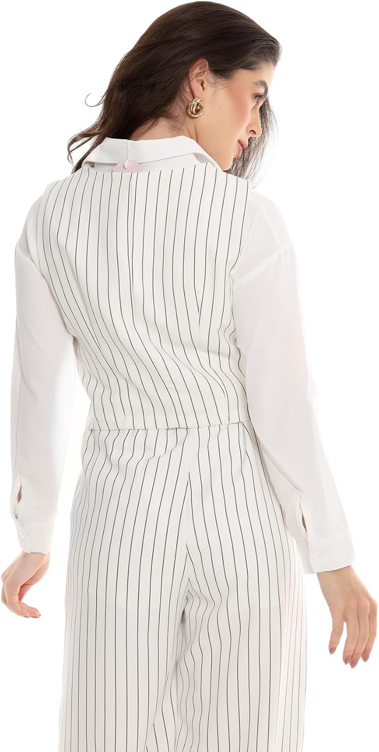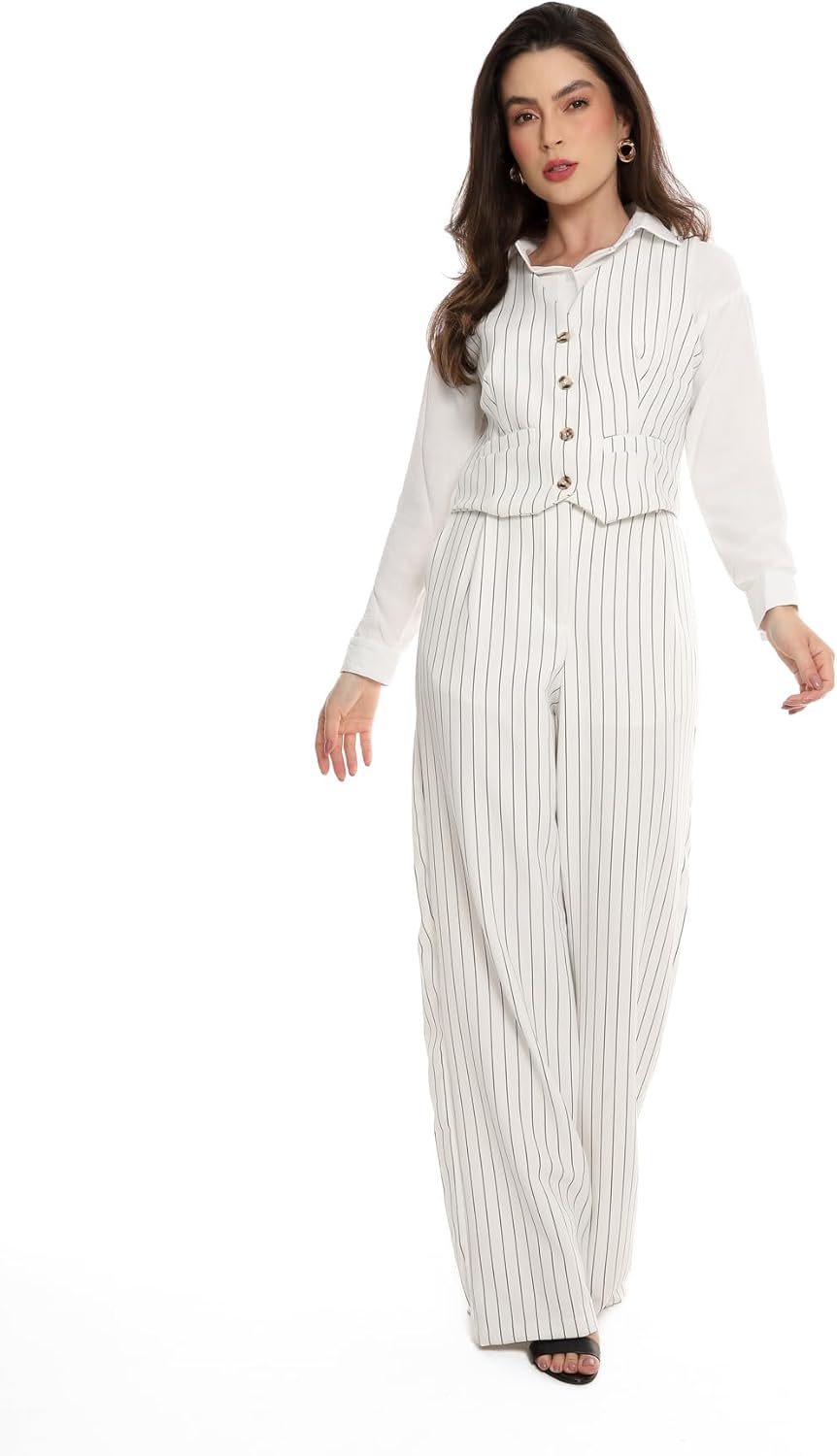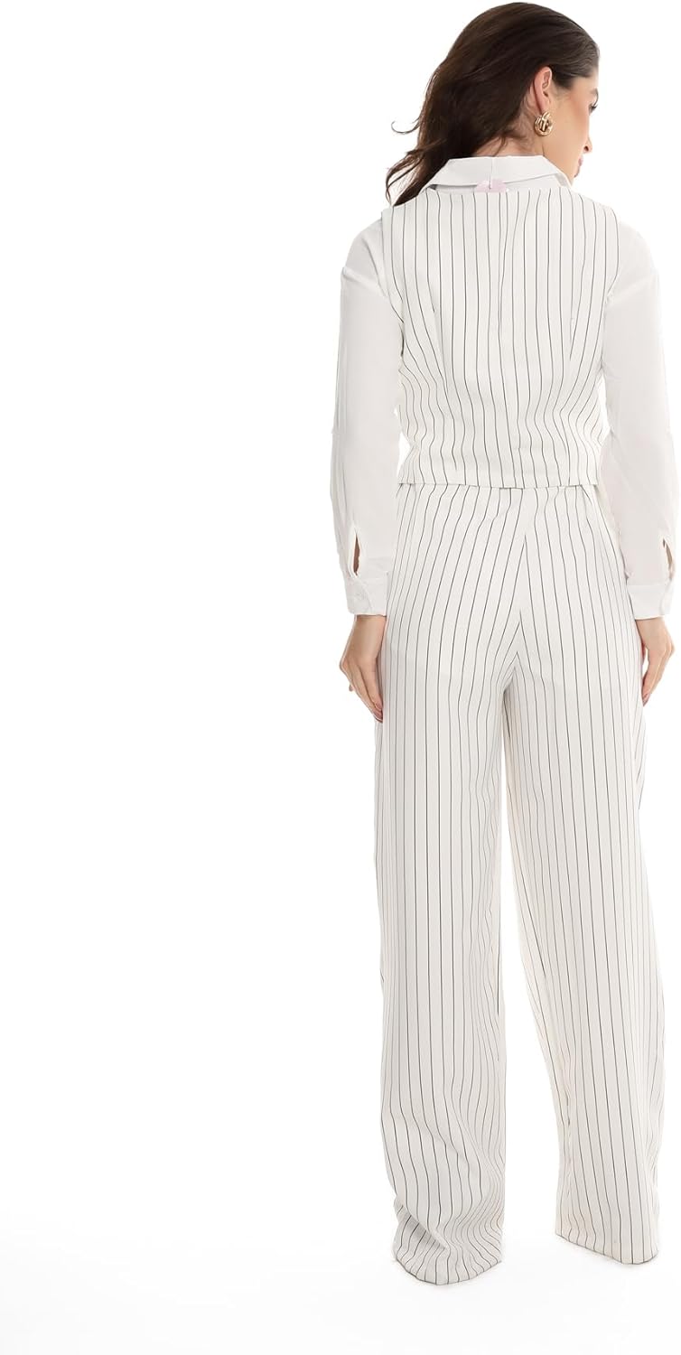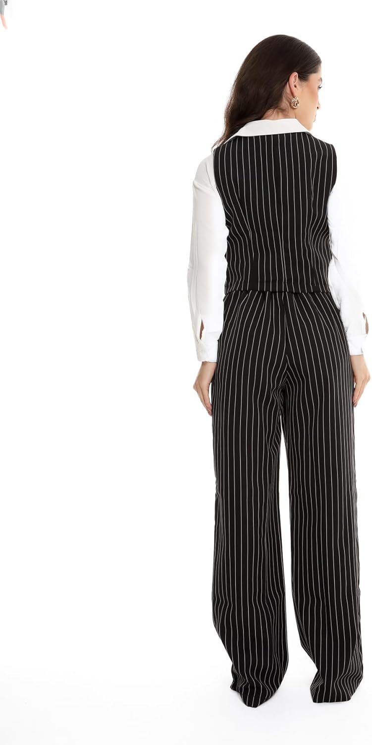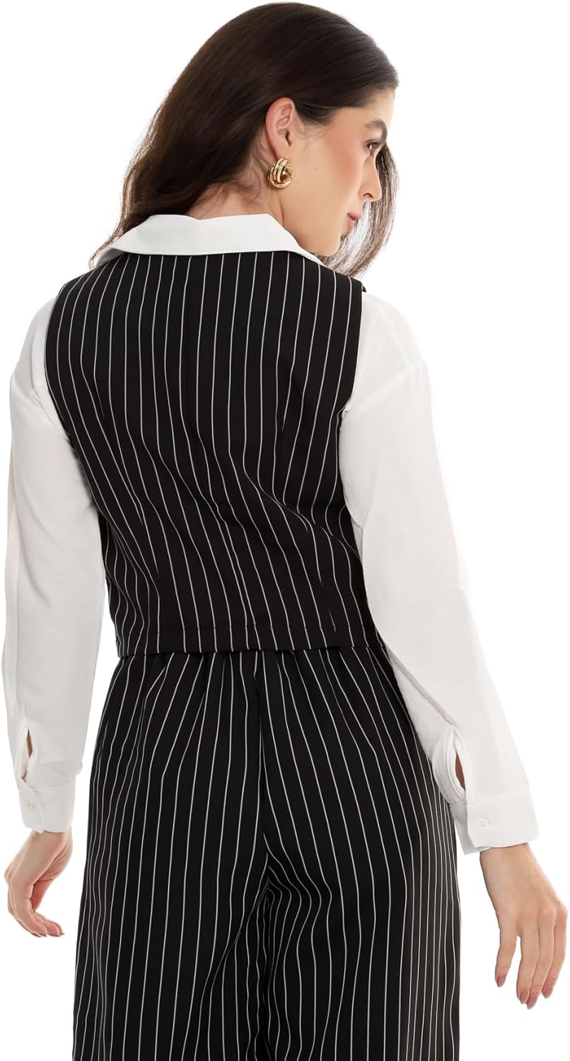 - DESIGN ELEGANTE: Conjunto de alfaiataria listrado com colete ajustado e short coordenado, ideal para um visual sofisticado e moderno