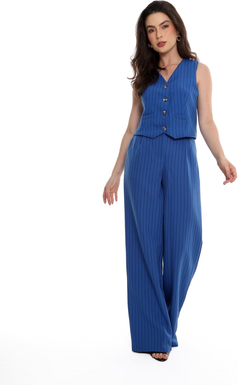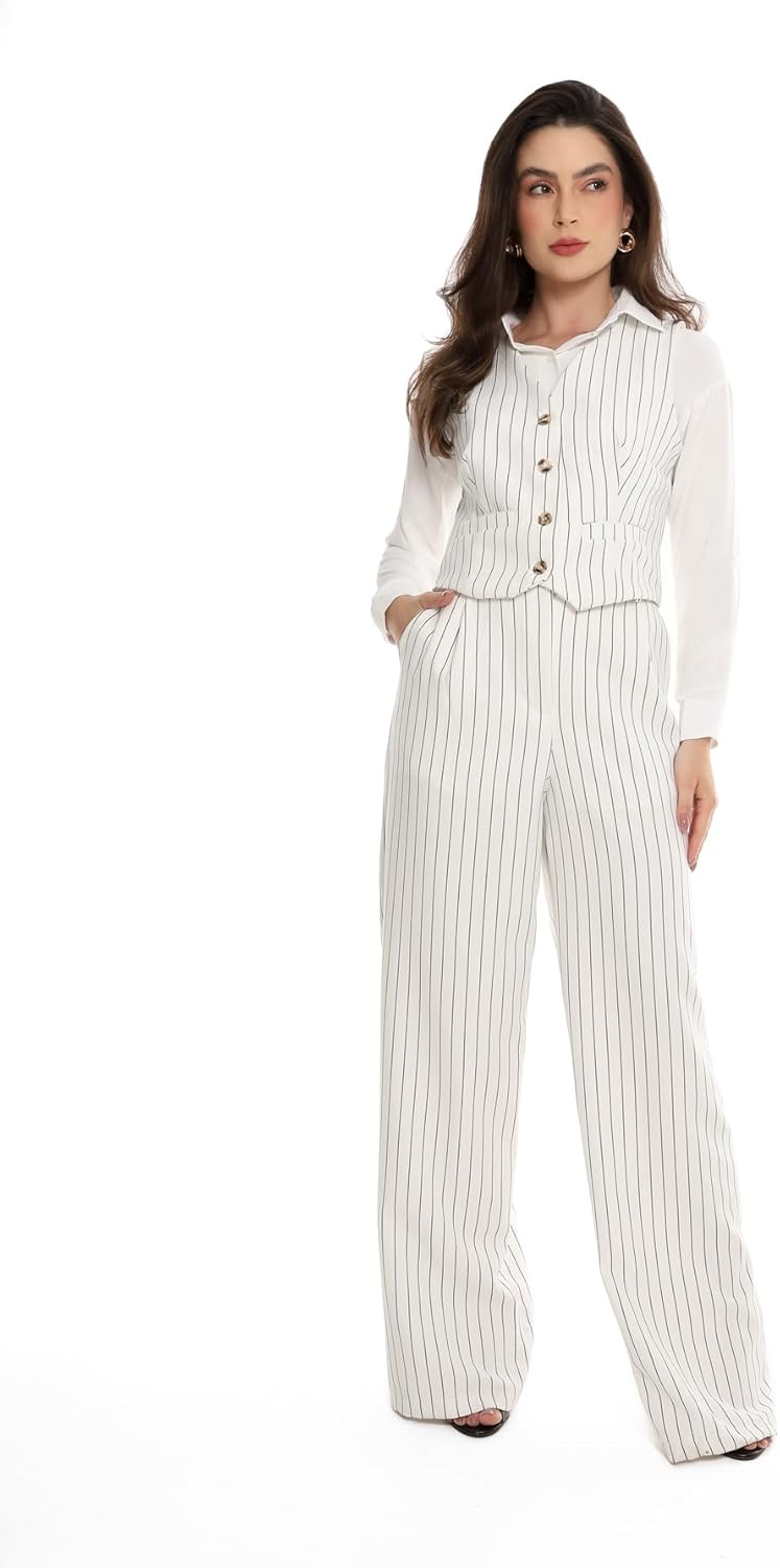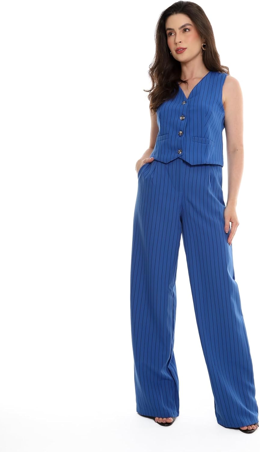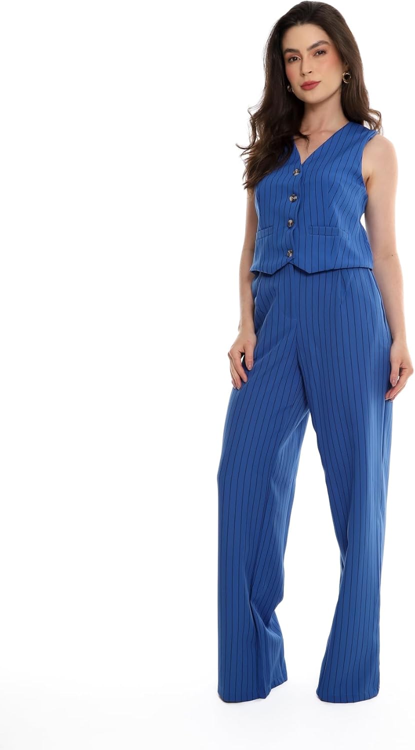 - CONFECÇÃO PREMIUM: Confeccionado em tecido de alfaiataria de alta qualidade com listras verticais que alongam a silhueta