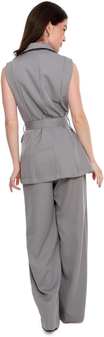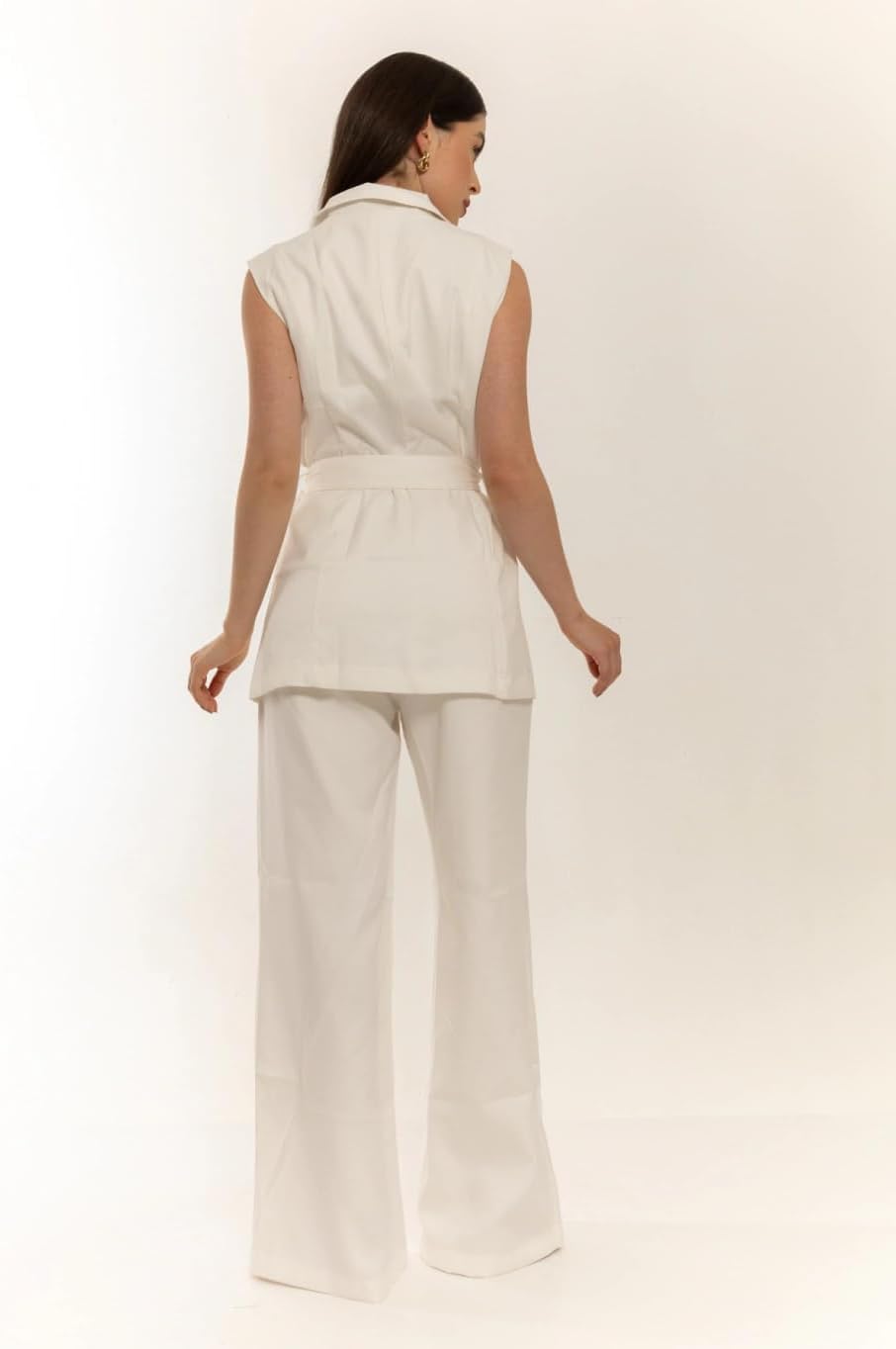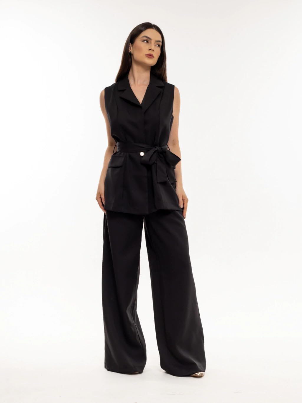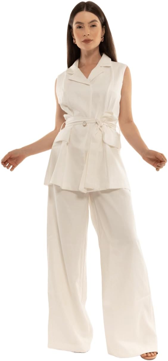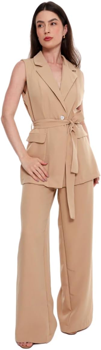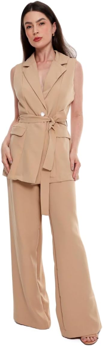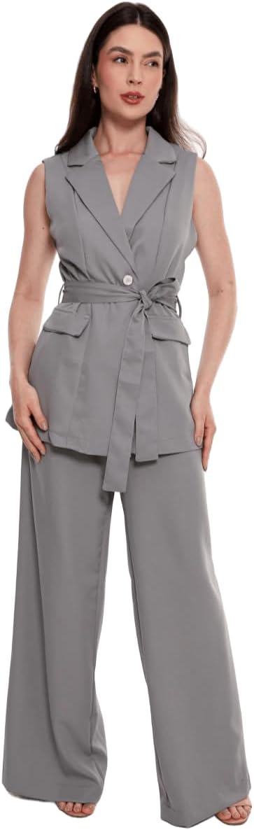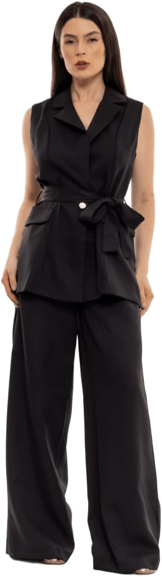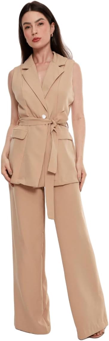 - CONJUNTO ELEGANTE: Blazer colete sem mangas com botões frontais e calça pantalona social, perfeito para looks sofisticados e profissionais