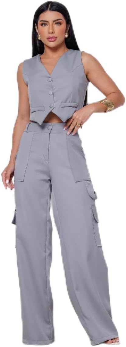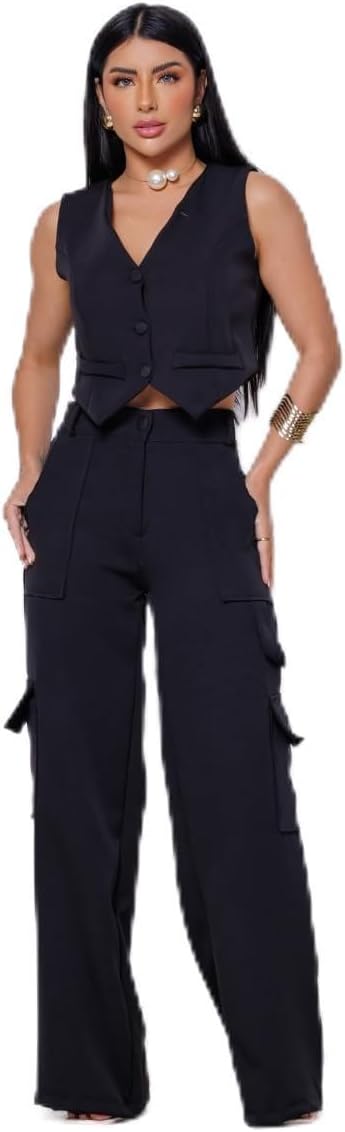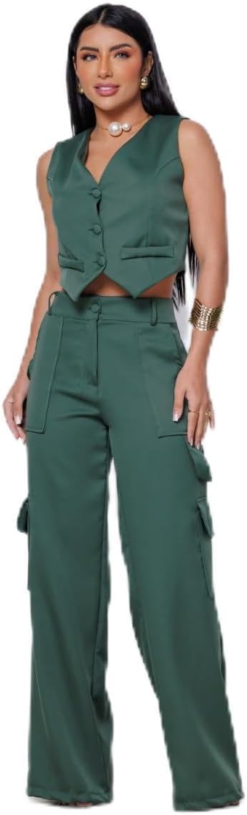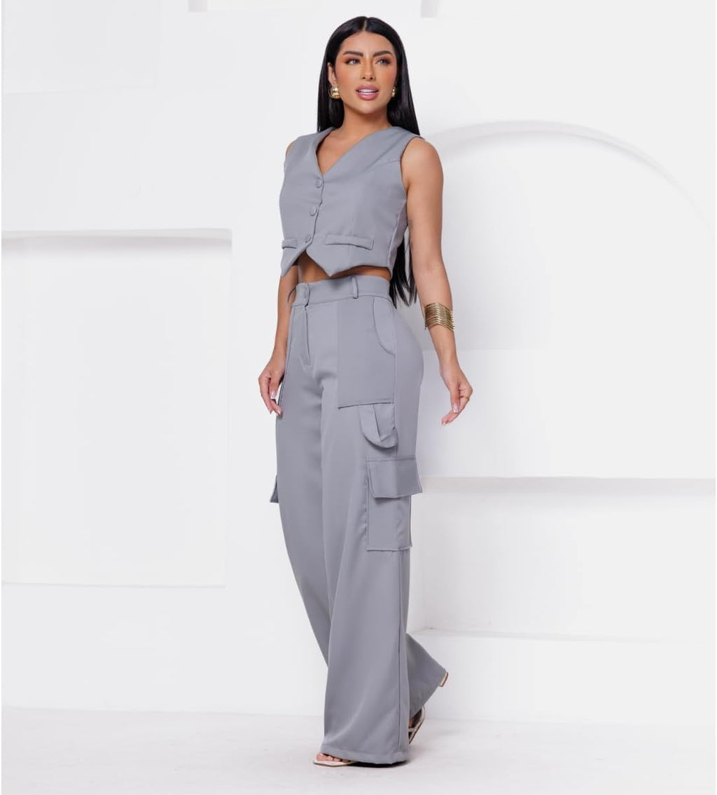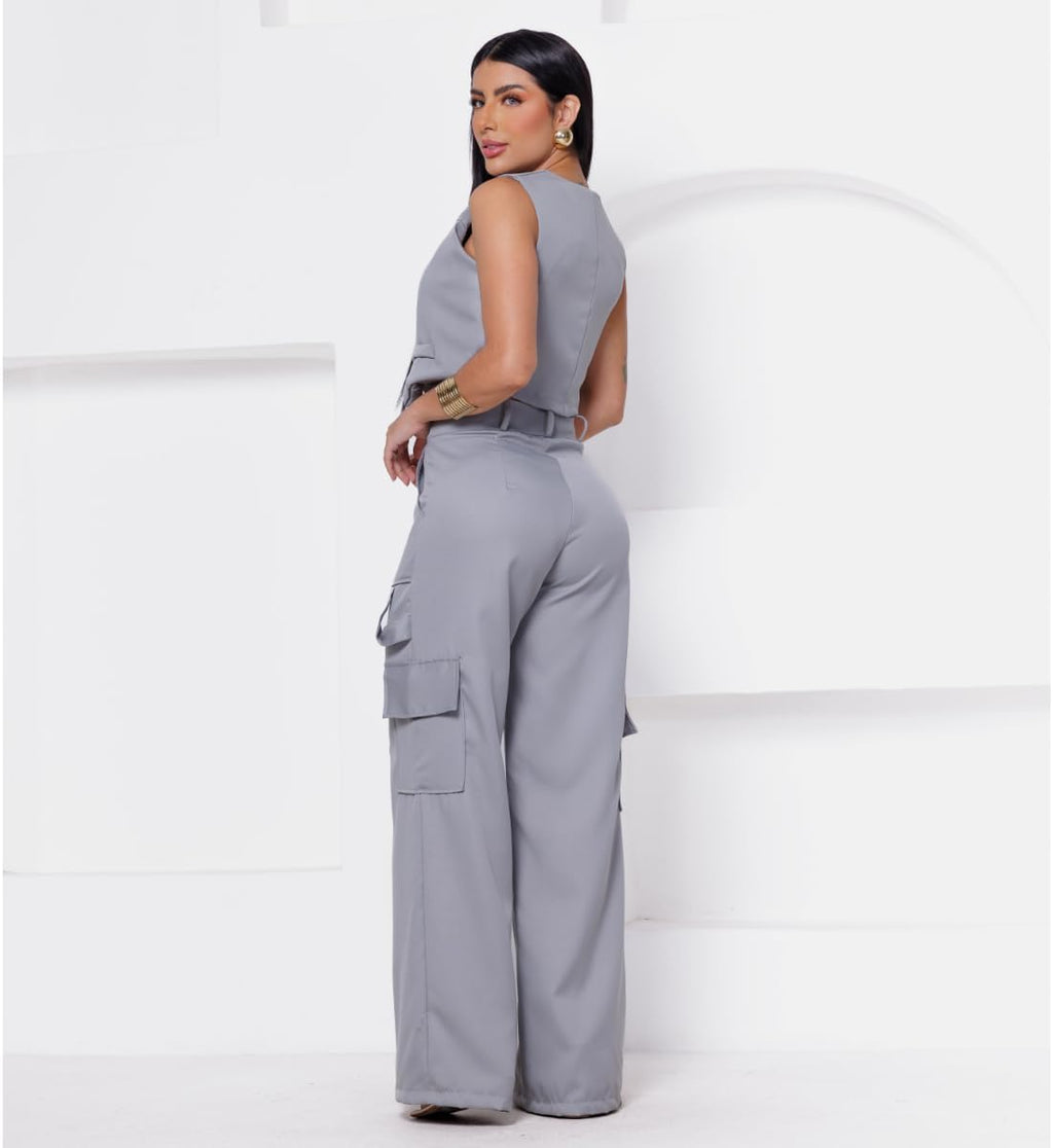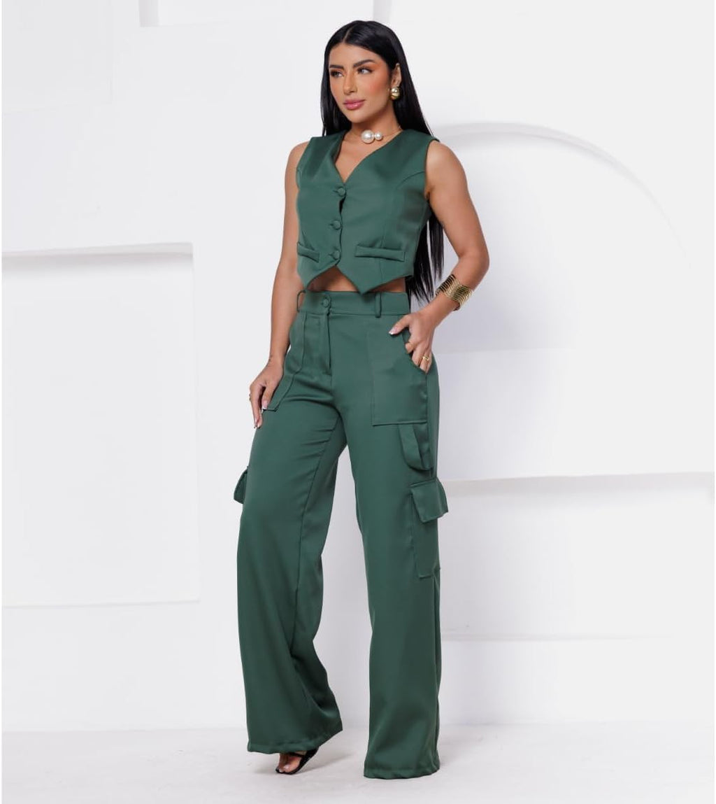 - Calça Cargo com bolsos frontais e laterais Colete Curto Com Bolso Fake