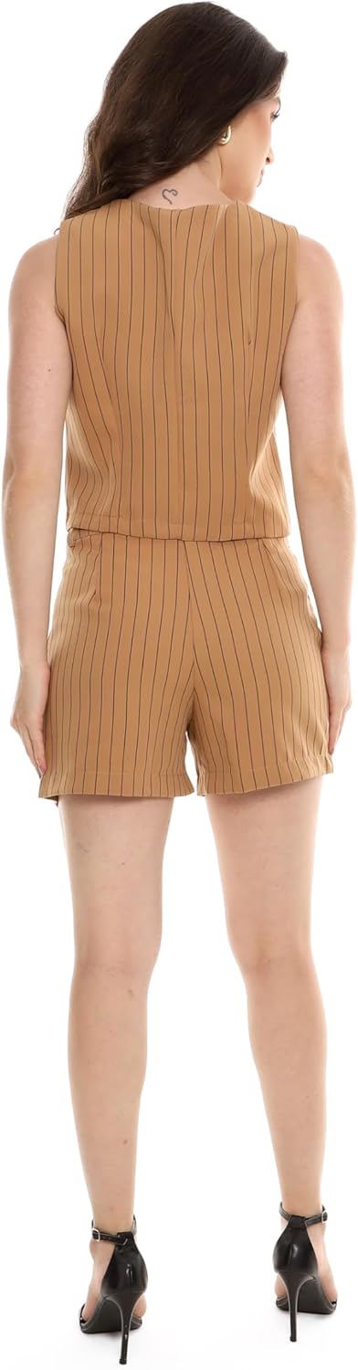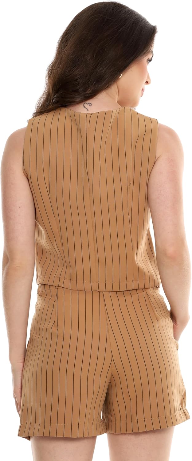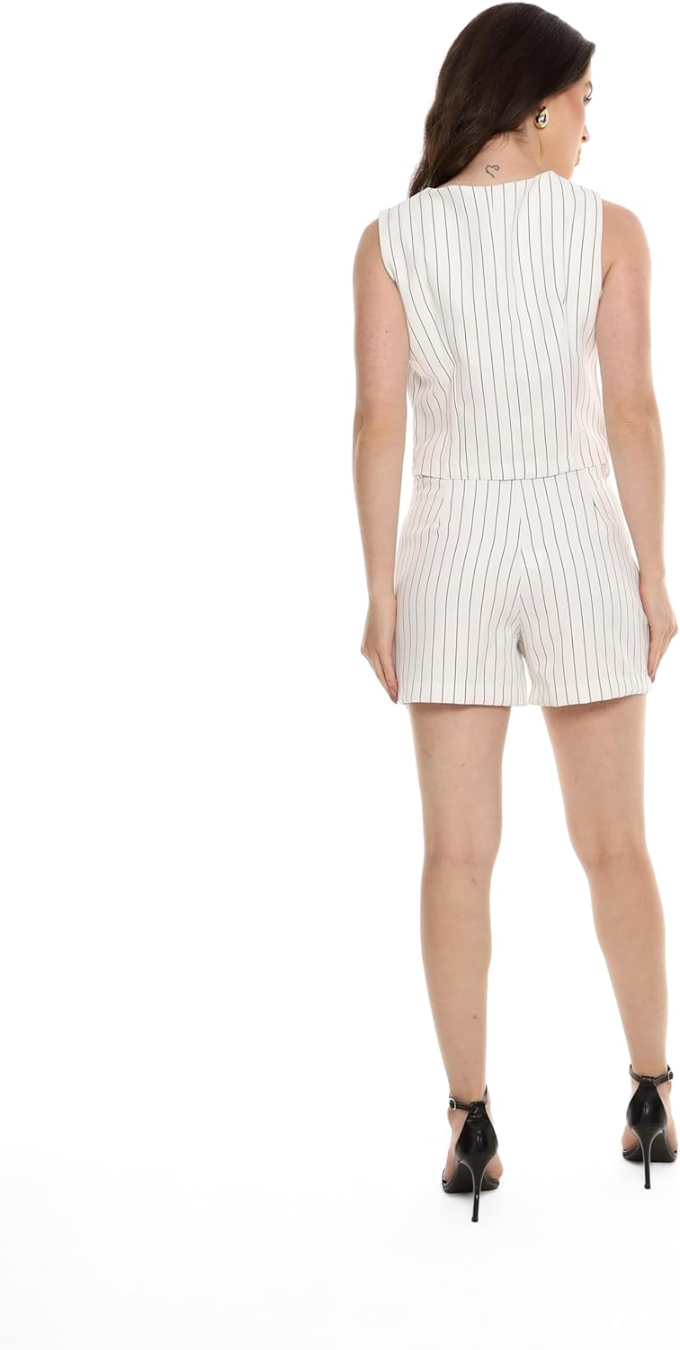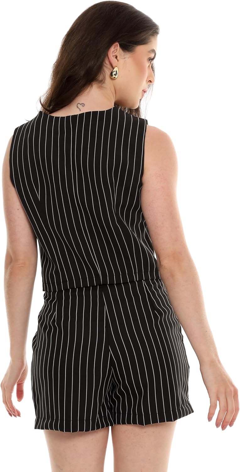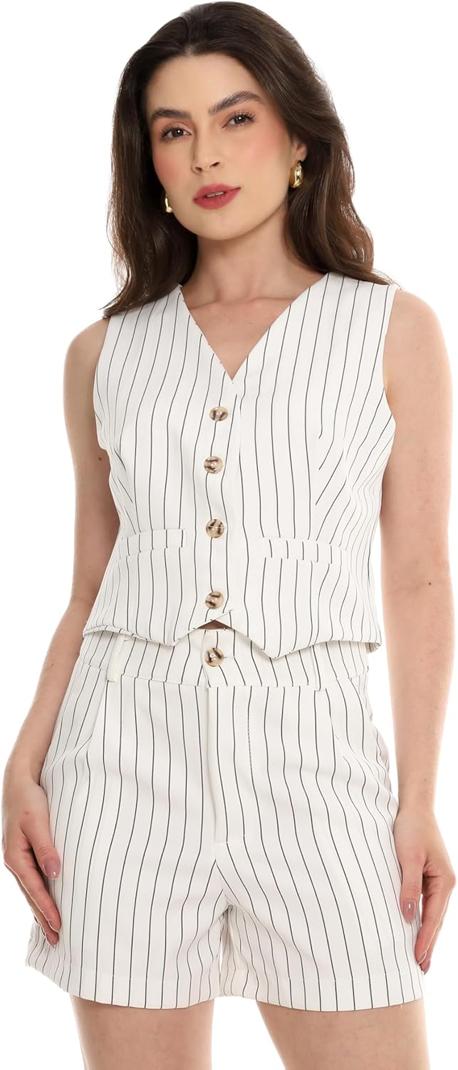 - CONJUNTO ELEGANTE: Conjunto feminino de alfaiataria listrado composto por colete e short, perfeito para looks sociais e casuais