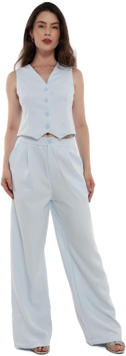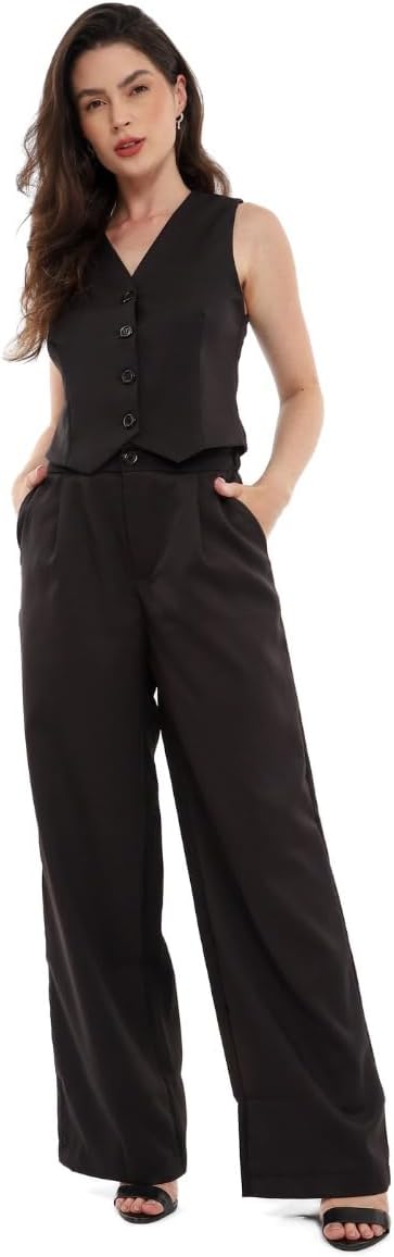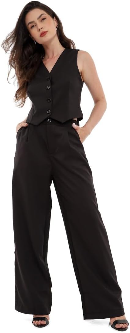 - CONJUNTO ELEGANTE: Conjunto feminino composto por colete estiloso e calça comprida em alfaiataria, oferecendo visual sofisticado e versátil.