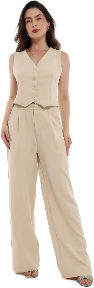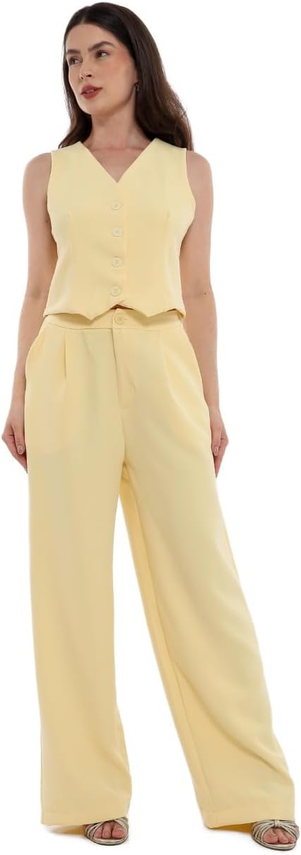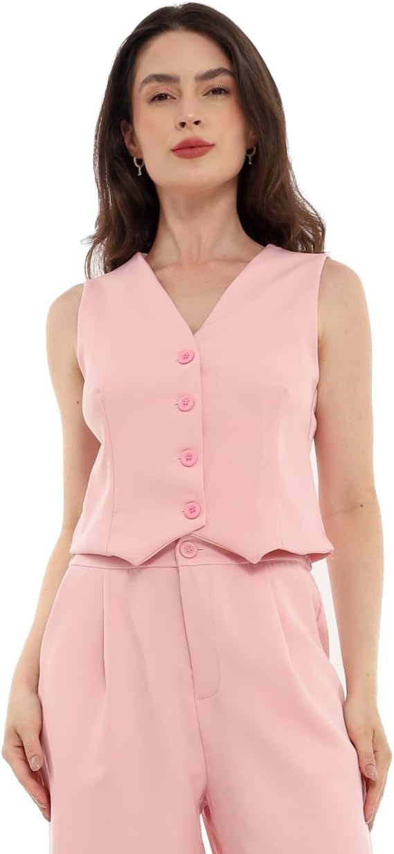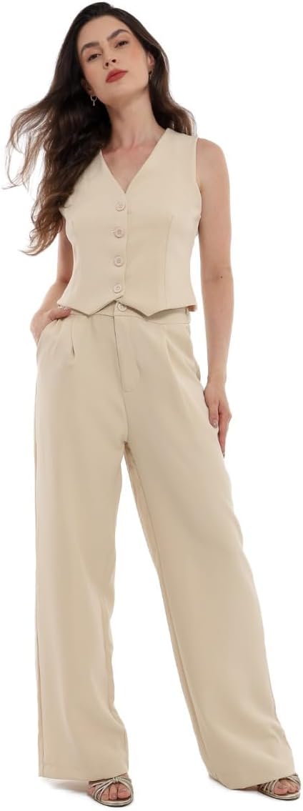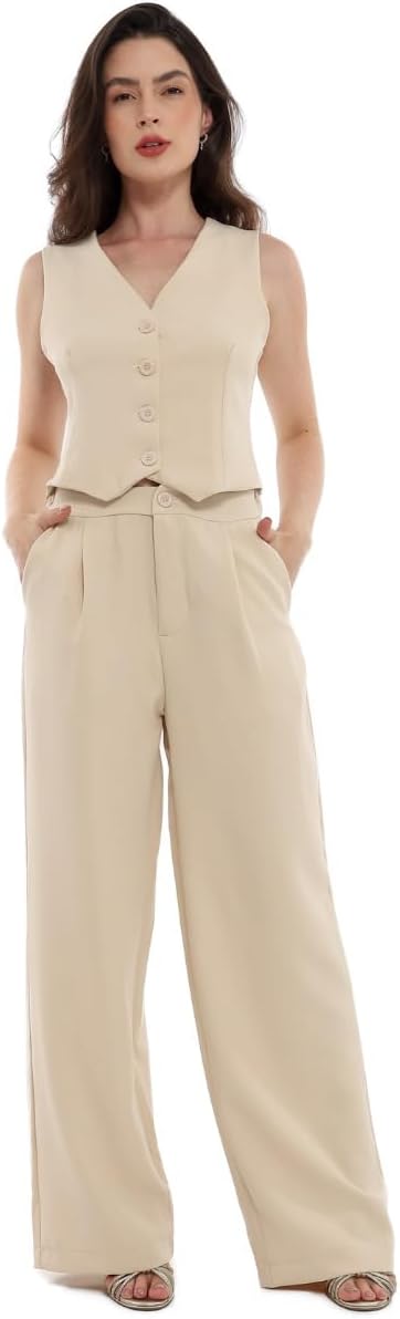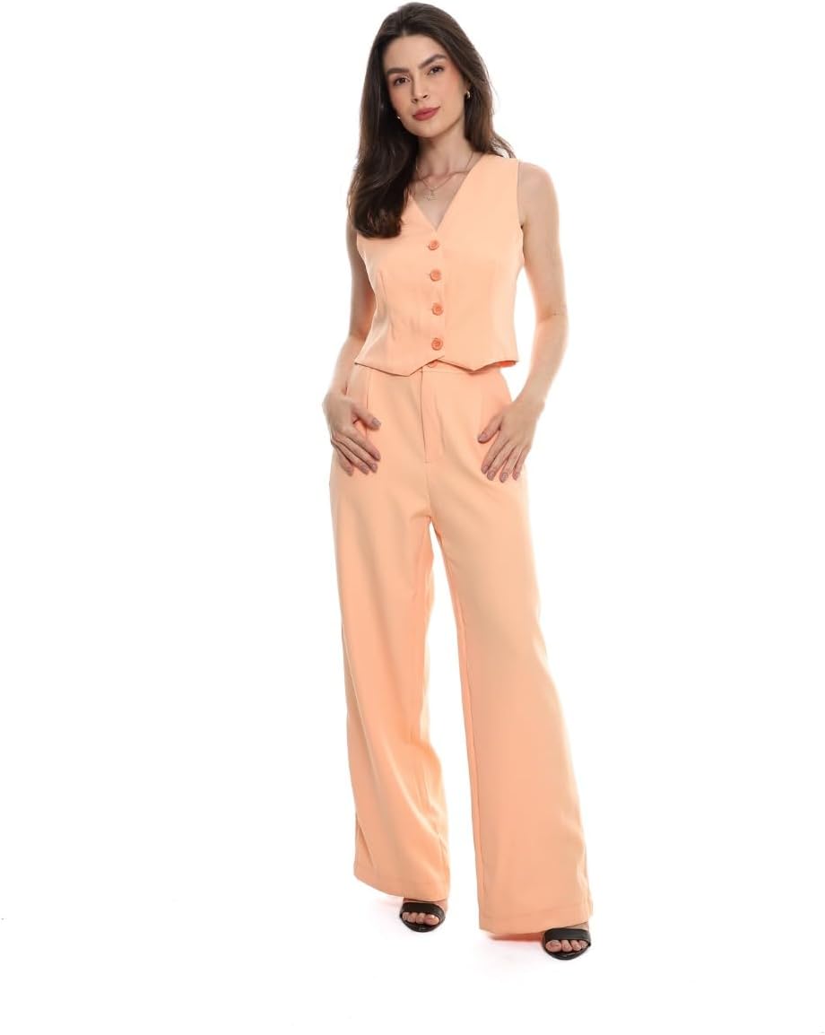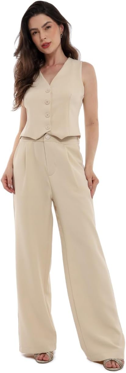- DESIGN MODERNO: Colete com botões e calça de alfaiataria que combinam estilo contemporâneo com praticidade no dia a dia.