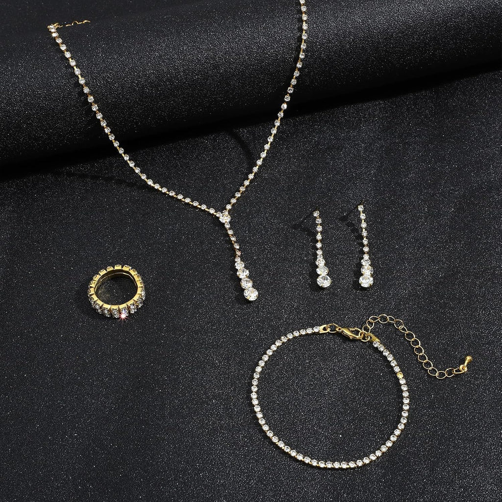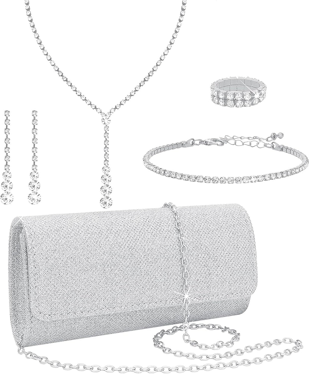 NEWITIN Conjunto de 5 peças de joias de strass para mulheres, joias de formatura, bolsa de embreagem de cristal, colares, pulseiras, brincos, conjunto de joias de prata para mulheres noivas