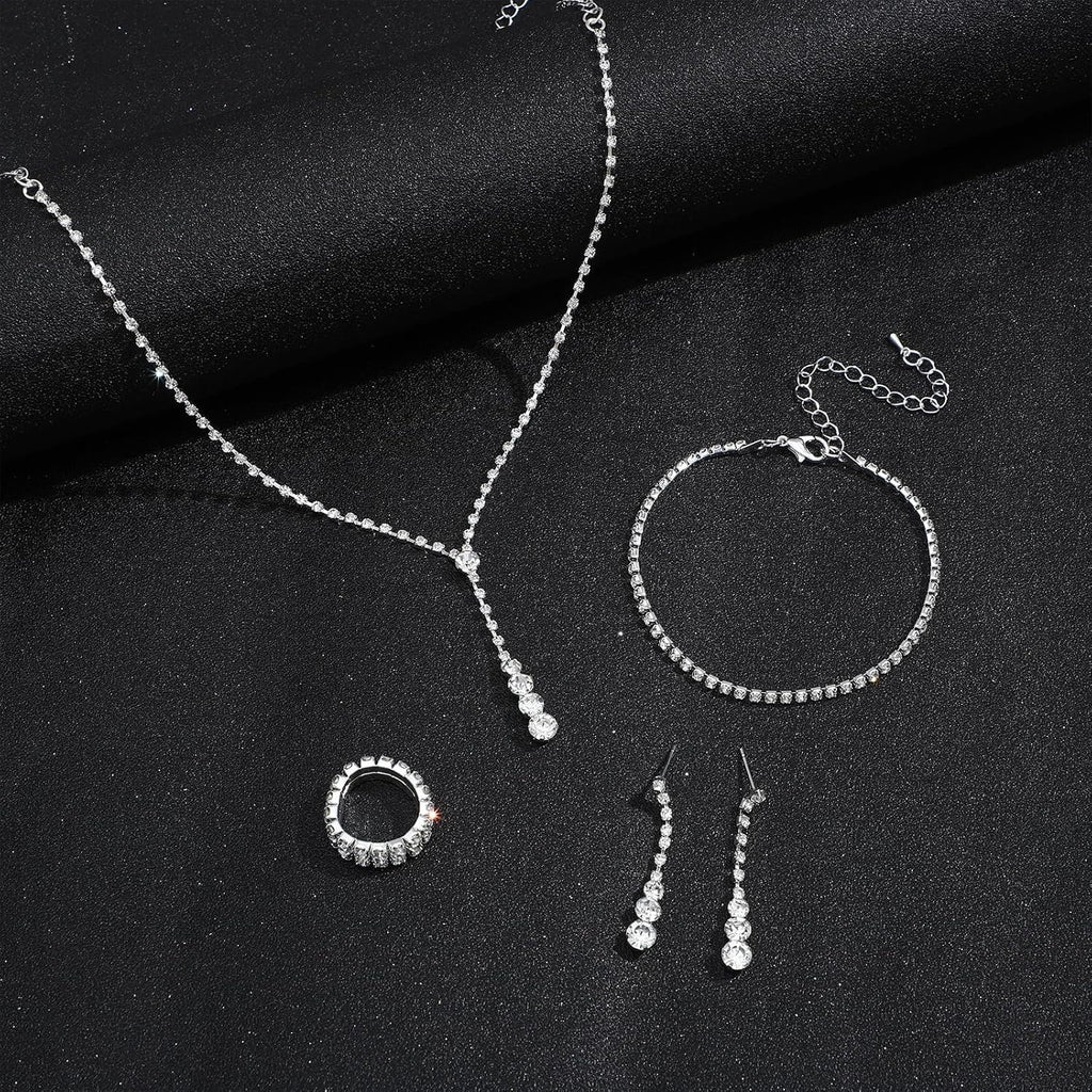 • Amplas aplicações: Nosso conjunto de joias de fantasia de cristal para mulheres é perfeito para noivado, casamento, formatura, cerimônia, aniversários, encontros, formatura ou qualquer ocasião em que você queira ser mais charmosa. O design brilhante faz você se destacar na multidão e receber elogios
